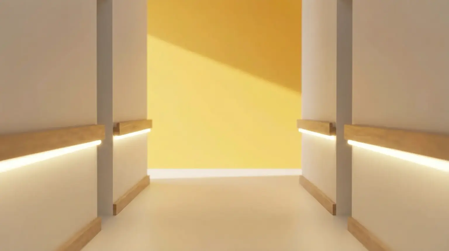 Besonders bei Demenz ist diese Kombination wichtig: Der barrierefreie Flur mit guter Beleuchtung und Orientierungshilfen erleichtert die Orientierung. Die Betreuungskraft kann bei Weglauftendenzen eingreifen und die Person sicher zurückbegleiten.