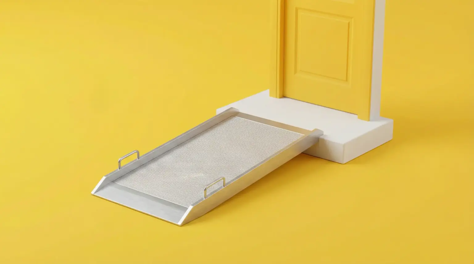Eine mobile Rollstuhlrampe lässt sich flexibel aufstellen und bei Bedarf wieder entfernen. Sie besteht meist aus leichtem Aluminium und ist in verschiedenen Längen erhältlich.